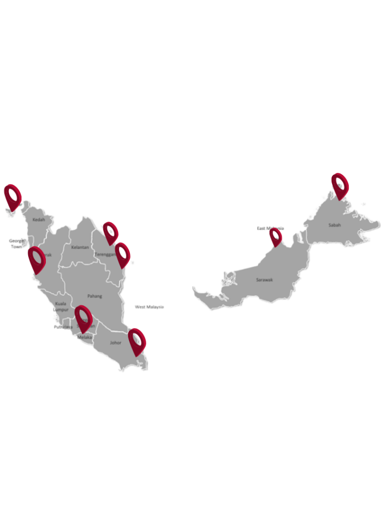 We operate with a strong executive presence at our Headquarters in Ayer Keroh, Melaka supported by a dedicated branch in Lumut, Perak to ensure nationwide coverage and client support.